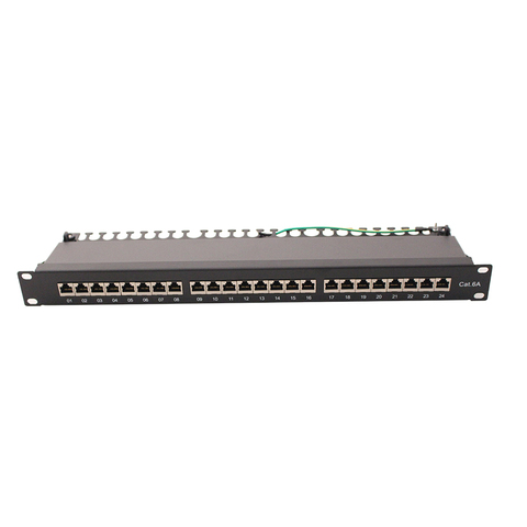 19 "1U + SPCC aço laminado a frio + 24 portas + Cat6A FTP Patch Panel